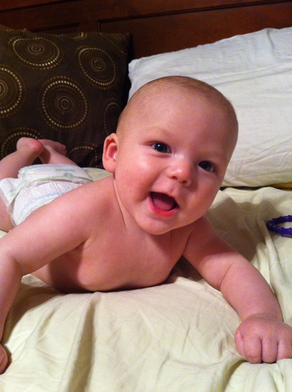 Jackson is getting so much stronger! He can now lay on his tummy and push himself up with his arms and he can roll over from front to back and back to front! I was able to capture it on video the other night. It took him a minute but he was able to get there. Little J has also learned where is thumb is.. not just occasionally.. but ALL the time. He will even spit out his paci in favor of his thumb.. That’s going to be a fun habit to break.. haha